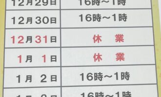 2023年〜2024年 年末年始 営業時間と休業日のお知らせ