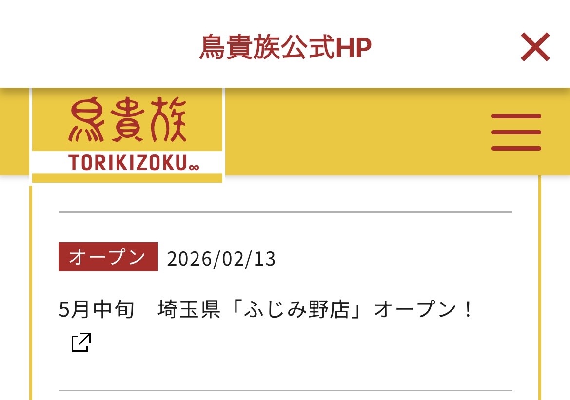 2026年5月中旬 鳥貴族ふじみ野店 NEW OPEN予定です